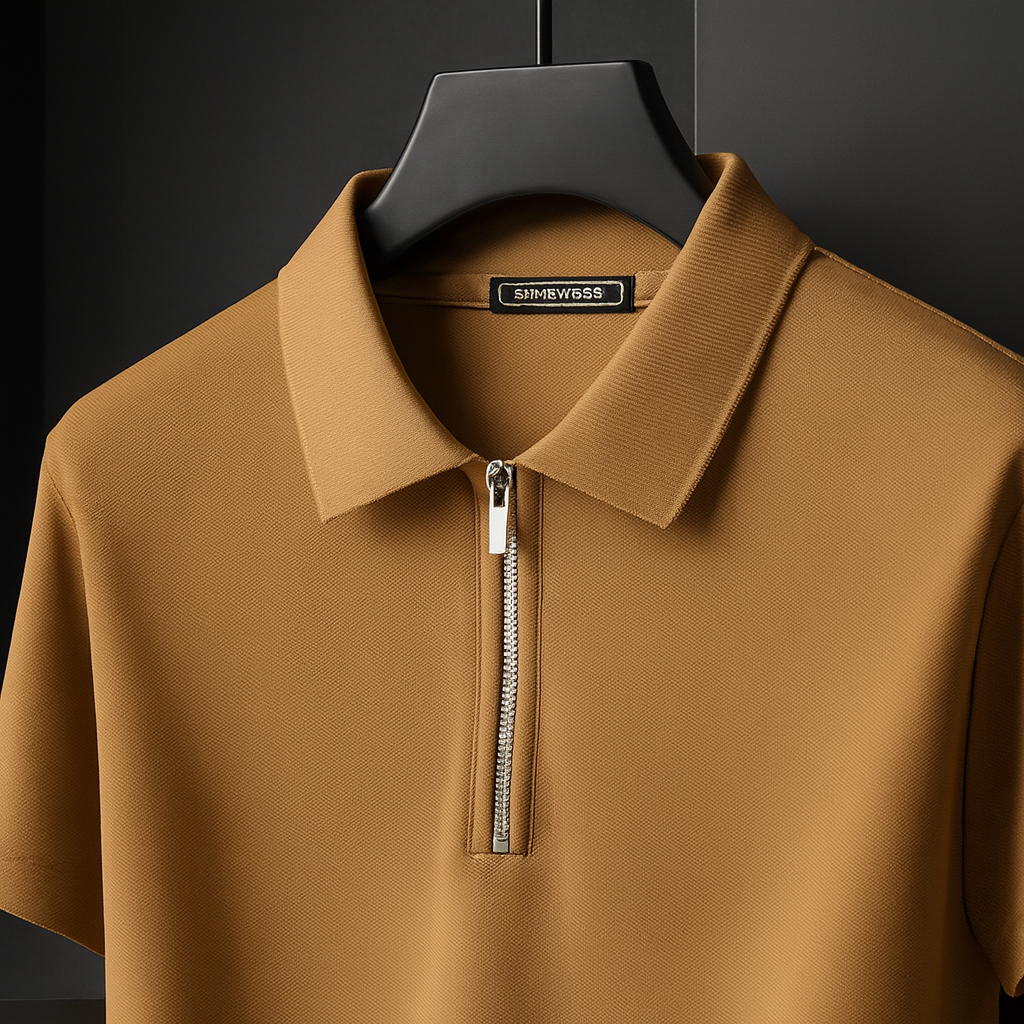 This zip-collar polo delivers a clean, contemporary silhouette made from smooth, breathable fabric. Its minimalist design and premium detailing make it an essential piece for both casual and elevated looks.