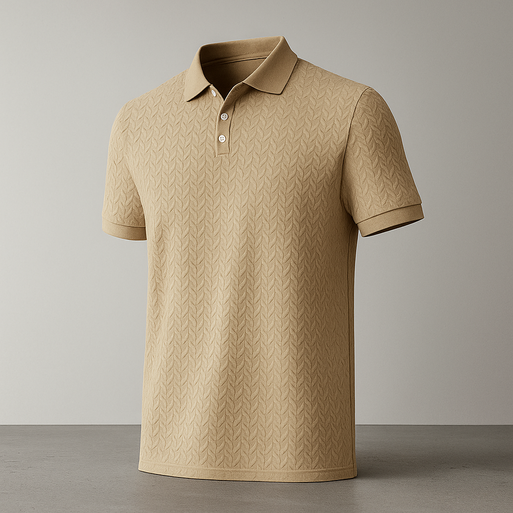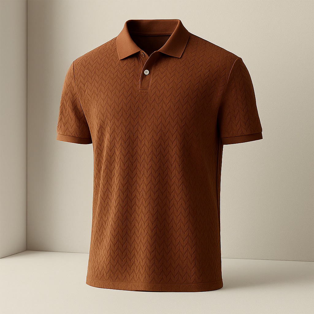 This premium light gray textured polo shirt blends sophistication with modern craftsmanship, featuring an intricate herringbone pattern for a refined, tactile finish. Designed for the discerning man, it delivers elegance and comfort—perfect for both elevated casual wear and polished occasions.